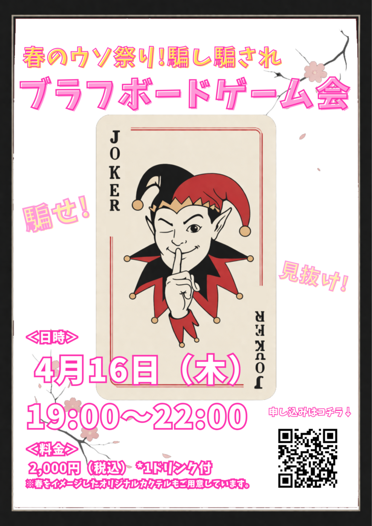 今回は「ウソ」をテーマにしたボードゲーム会を開催します! ウソやハッタリを駆使して騙せ!